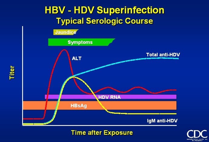 What is the serological course for HDV superinfection?