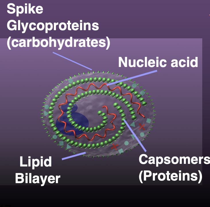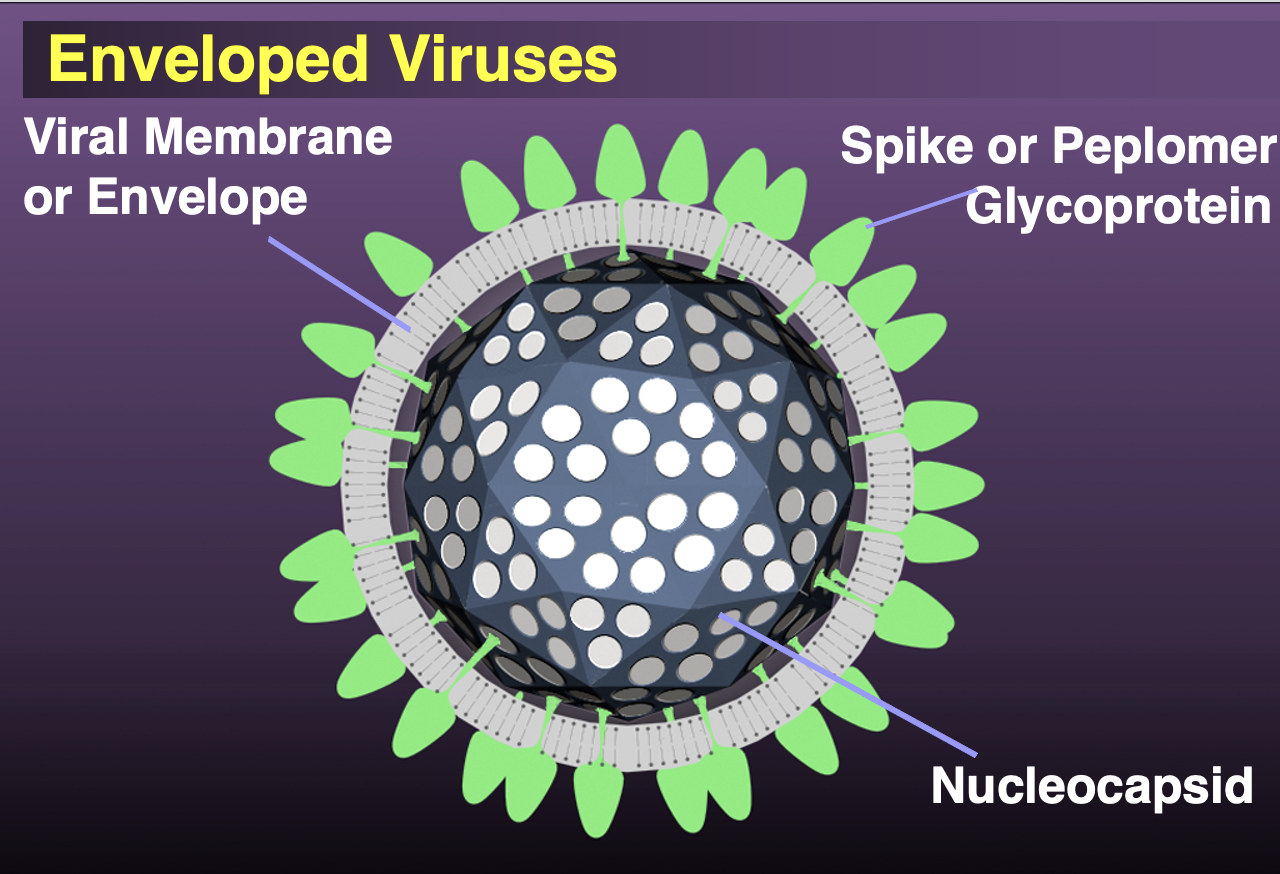 * Building blocks of non-enveloped viruses plus Envelope: peplomer/spike, matrix proteins, lipids