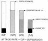 Multiple, continuous transmissions, disease presence in a defined population/region/time