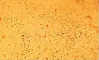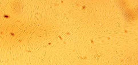 Usually grows best at 33° C (lower than the normal 35-37° C range) and CPE is highly retractile rounding occurring only in HDF. The involved cells appear in patches with most of the monolayer looking normal.