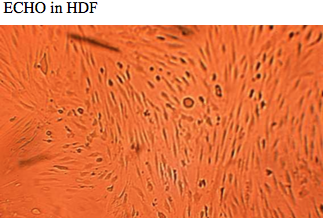 CPE varies from uniform small rounding in MK to a stringy appearance then cell death in HDF.