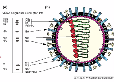 * Segmentindelningen gör att RNA kan mixas med andra typer av influensor på ett enkelt sätt genom rekombinering, t ex genom att gris får influensa från människa och fågel, ger nya varianter av influensavirus * Kan också gå från människa till djur också förstås