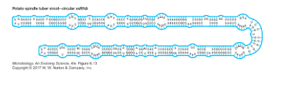 *basically just naked RNA, no protein cpaid and replicated by the hosts RNA polymerase