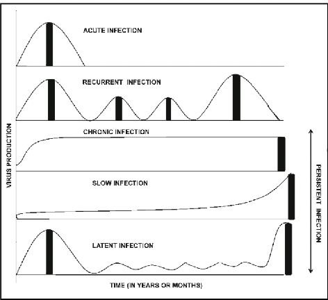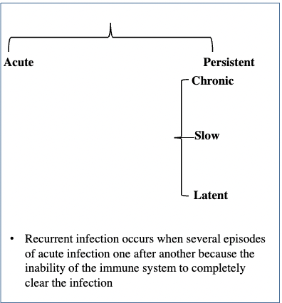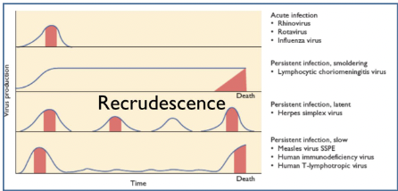 Recurrent: repeated cycle of viral infection. Recover a little bit, then feel sick again b/c you do not have complete clearance.