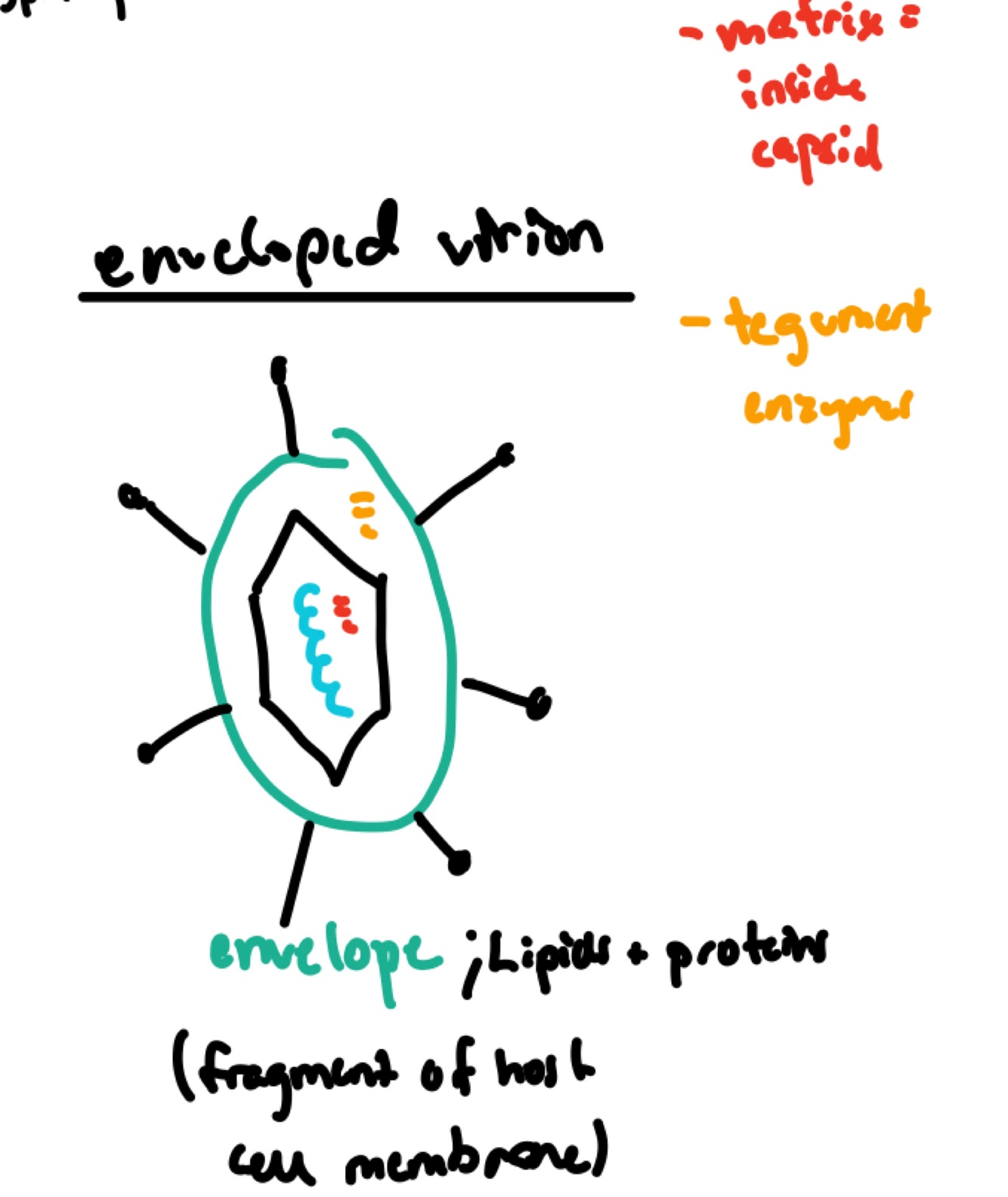 What kind of proteins are sometimes found in the matrix or tegument of virions?