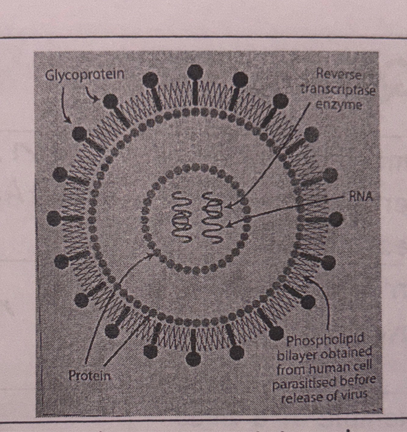 The phospholipid bilayer is obtained from the human cells infected before the release of the virus.