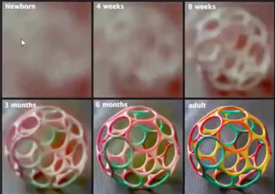 for a newborn to make sense of anything in a scene it needs to be massive and bright and high contrast