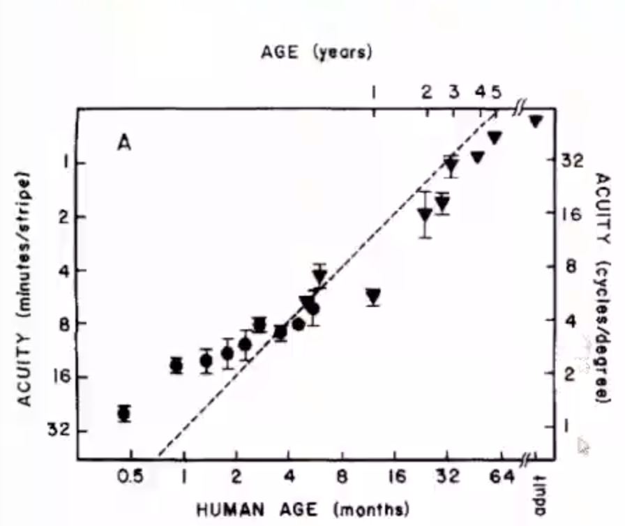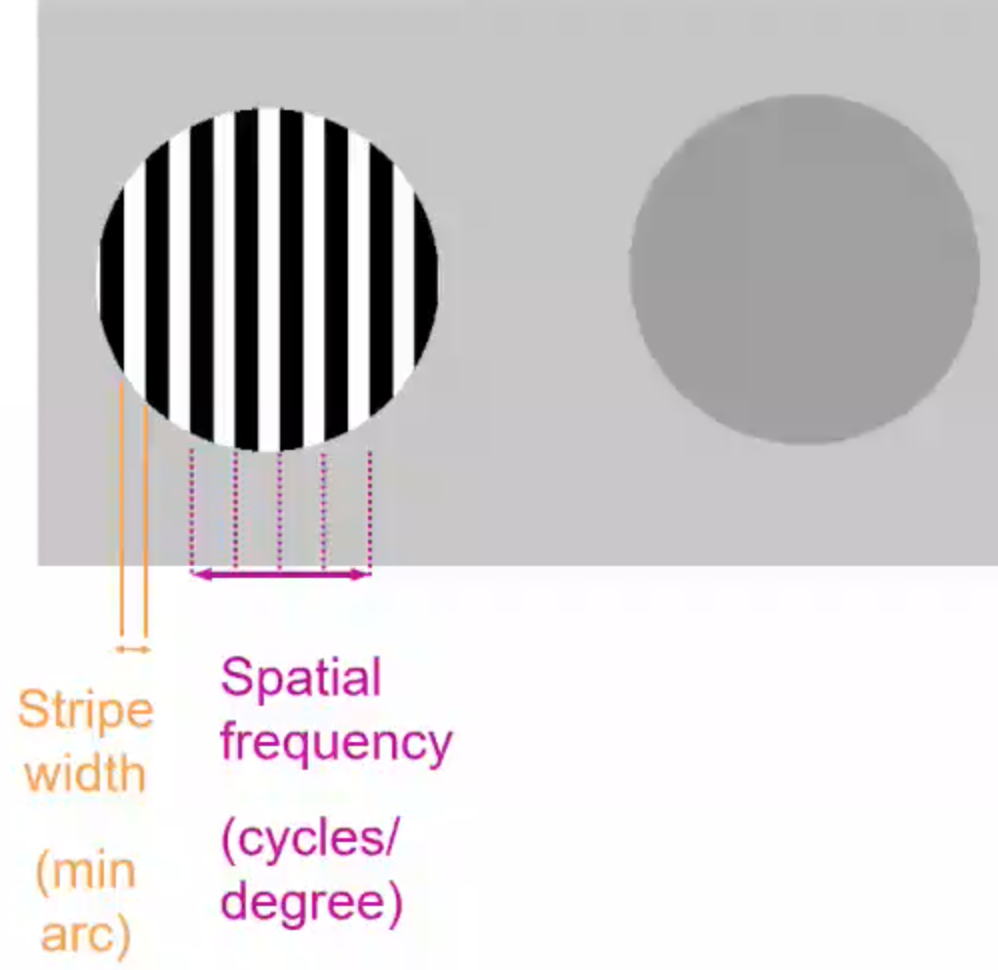 visual acuity tests tell us the finest pattern someone can detect before it just looks grey