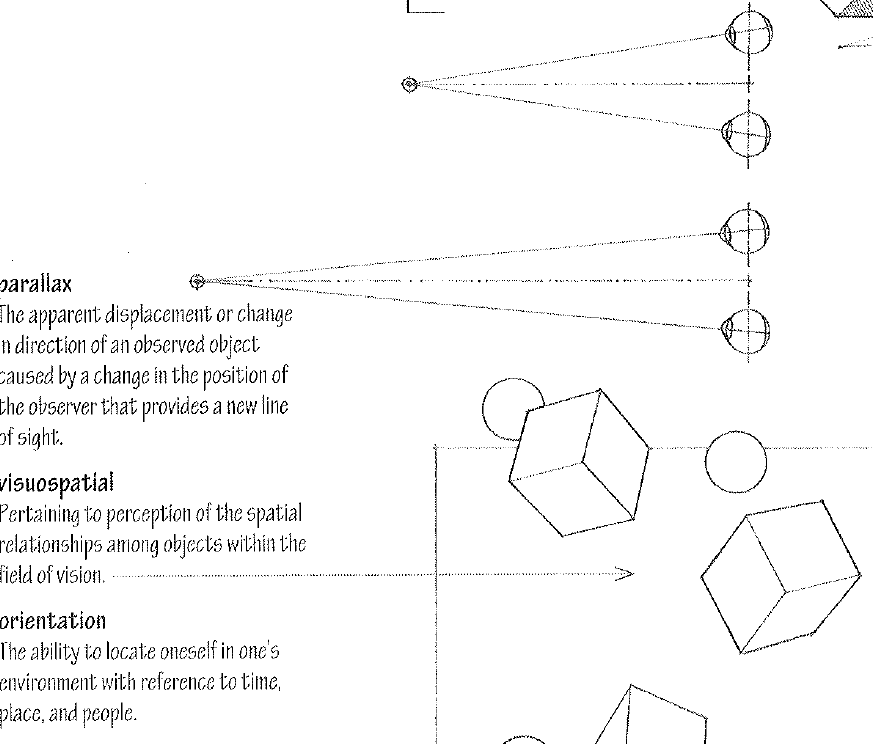 Pertaining to perception of the spatial relationships among the objects within the field of vision.