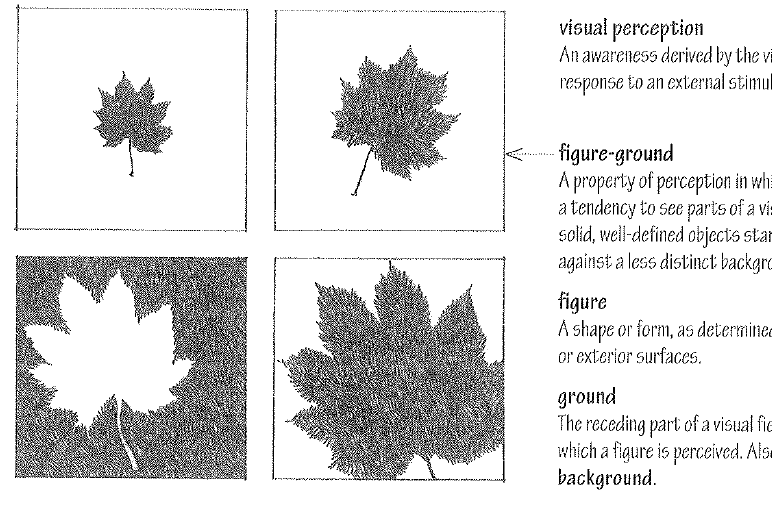 A property of perception in which there is a tendency to see parts of a visual field as solid, well-defined objects standing out against a less distinct background.