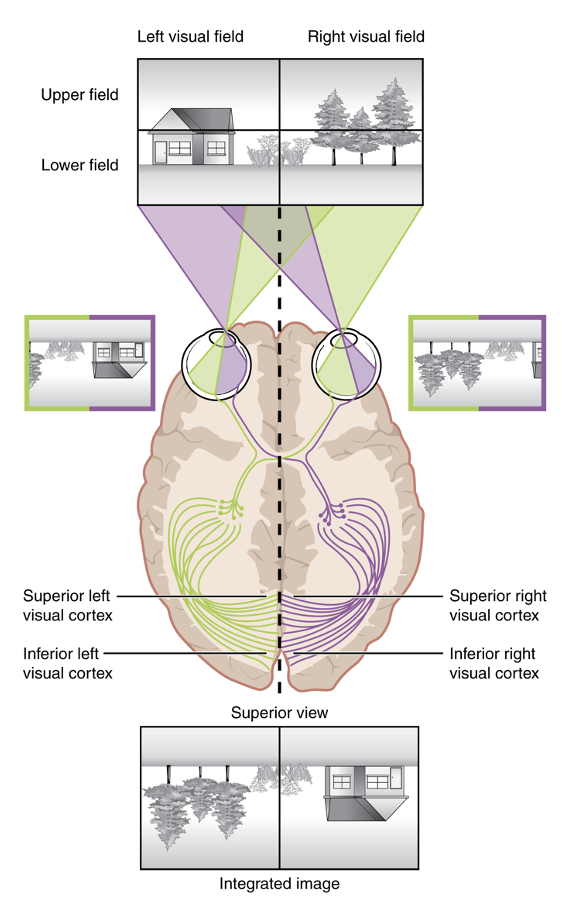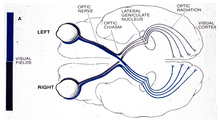 Many terminate at lateral geniculate nucleus => relay to visual cortex (~40% of cortical area)