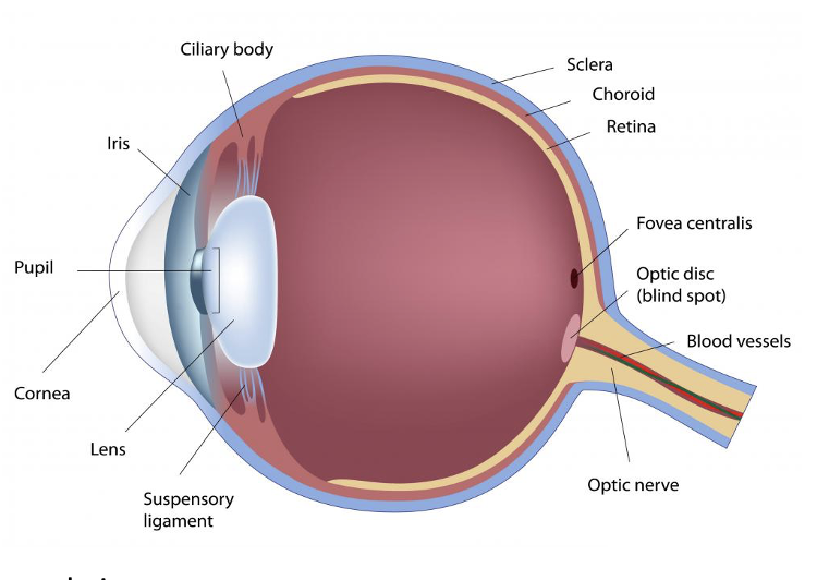 Sclera turns really transparent and forms the cornea. This is the area that does the most refraction of light. Cornea provides most optical power
