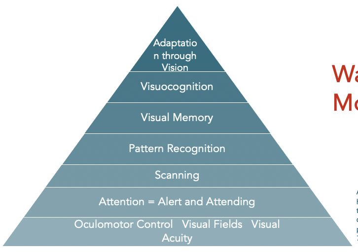 May include visual acuity and visual field deficits that impact a persons ability to complete everyday activities