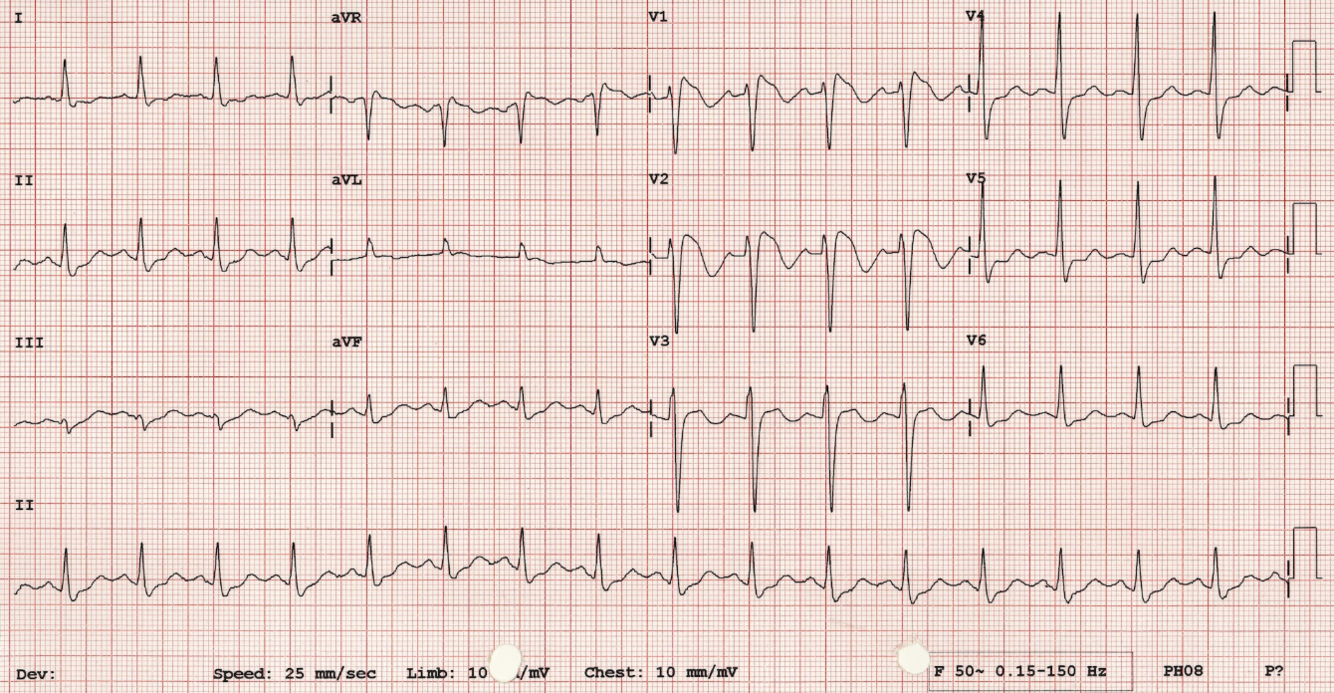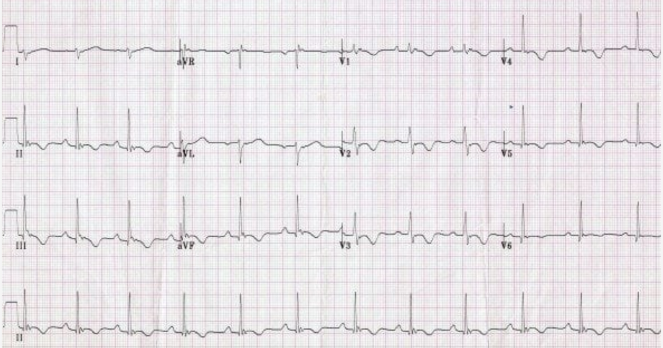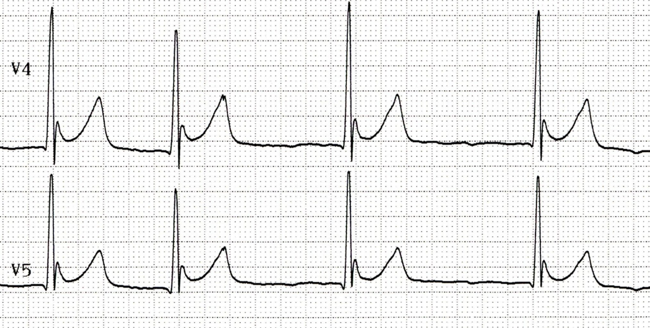 This ECG abnormality must be associated with one of the following clinical criteria to make the diagnosis: