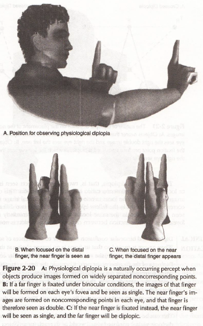 This phenomenon is called physiological diplopia because it is NORMAL, pathological diplopia - BV disorders