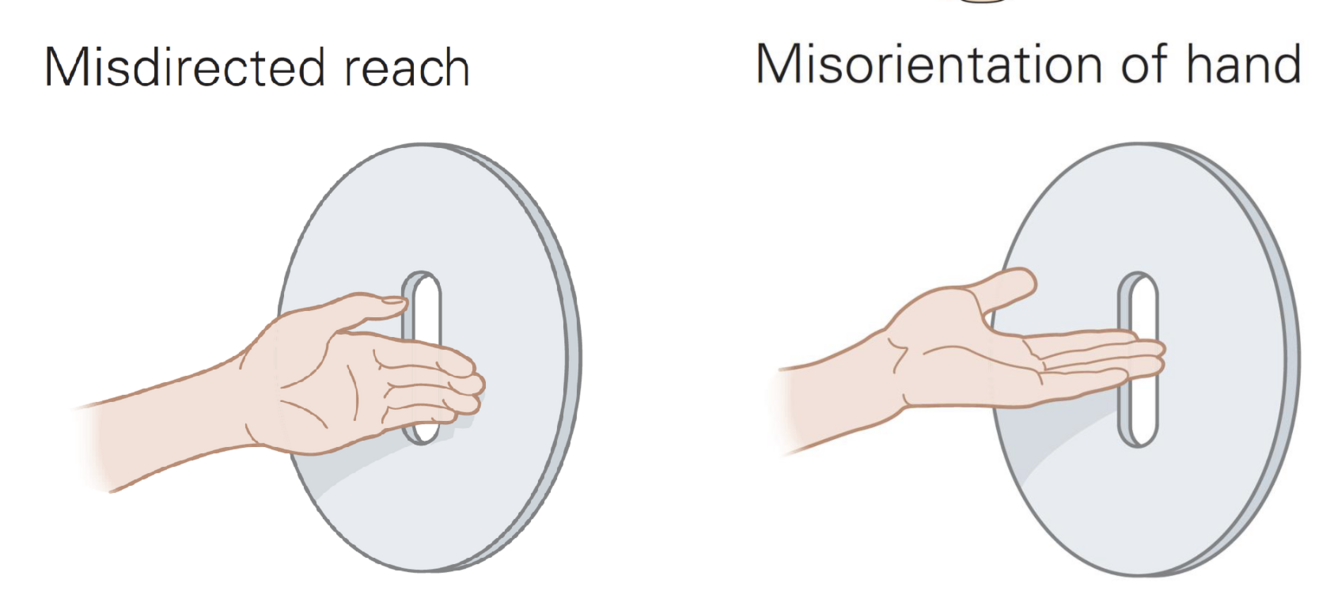 damage to structures in the dorsal stream, causes selective impairments in the inability to use vision to guide reaching movements