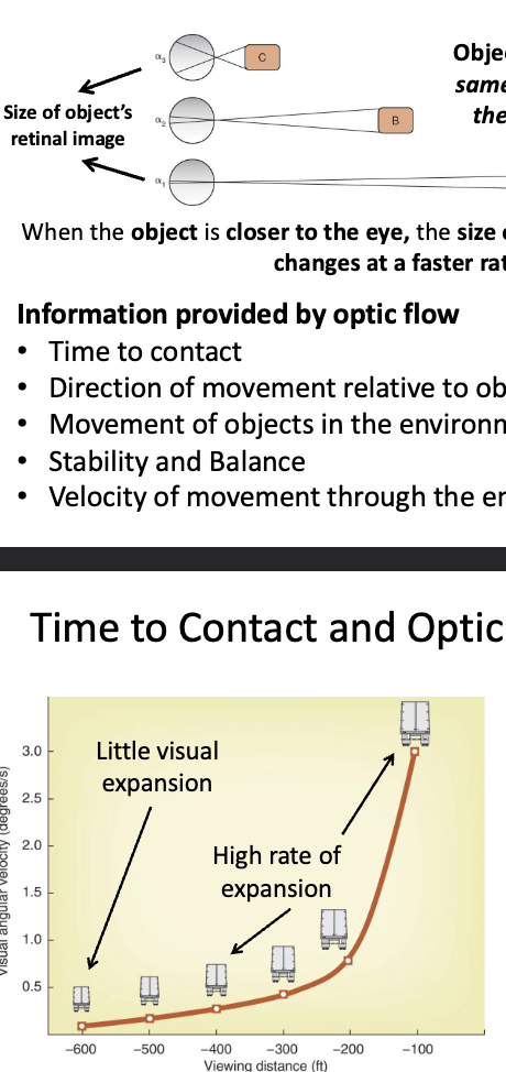 When the object is closer to the eye, the size of the image on the retina changes at a faster rate.