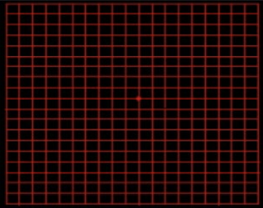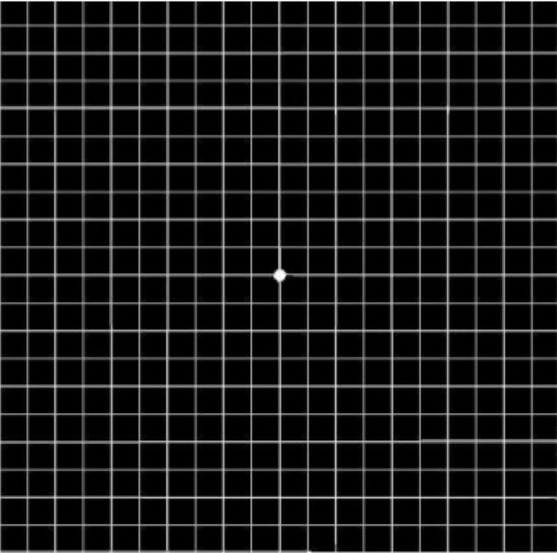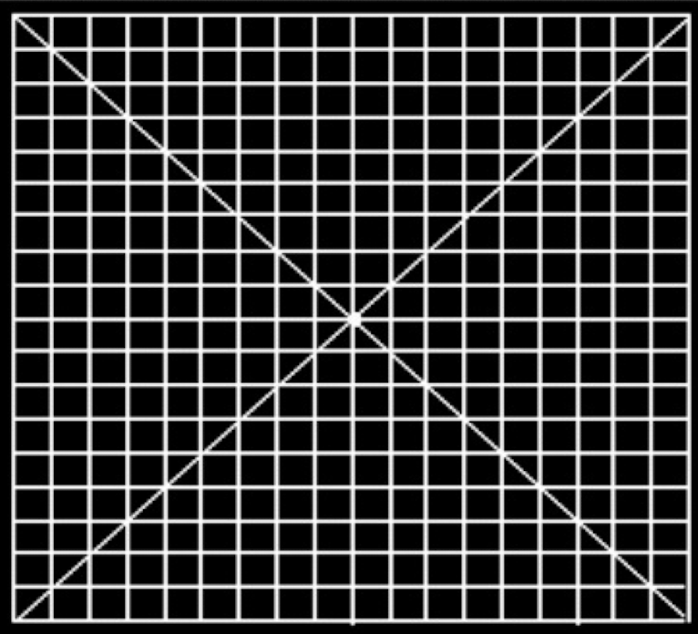 Chart 2 - used when central point is not seen as the diagnoal lines help to fixate the centre of the square in spite of central scotoma
