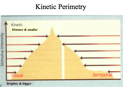 manualkineticbutcan also do static stimuli; tests almost entire VF. Vary stimulus sizes and intensities.