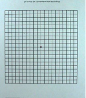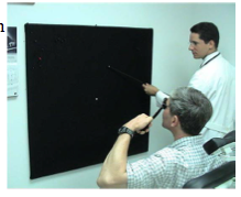 Plots blind spot, checks for false positives (sound only) and false negatives (stimulate known seeing area)