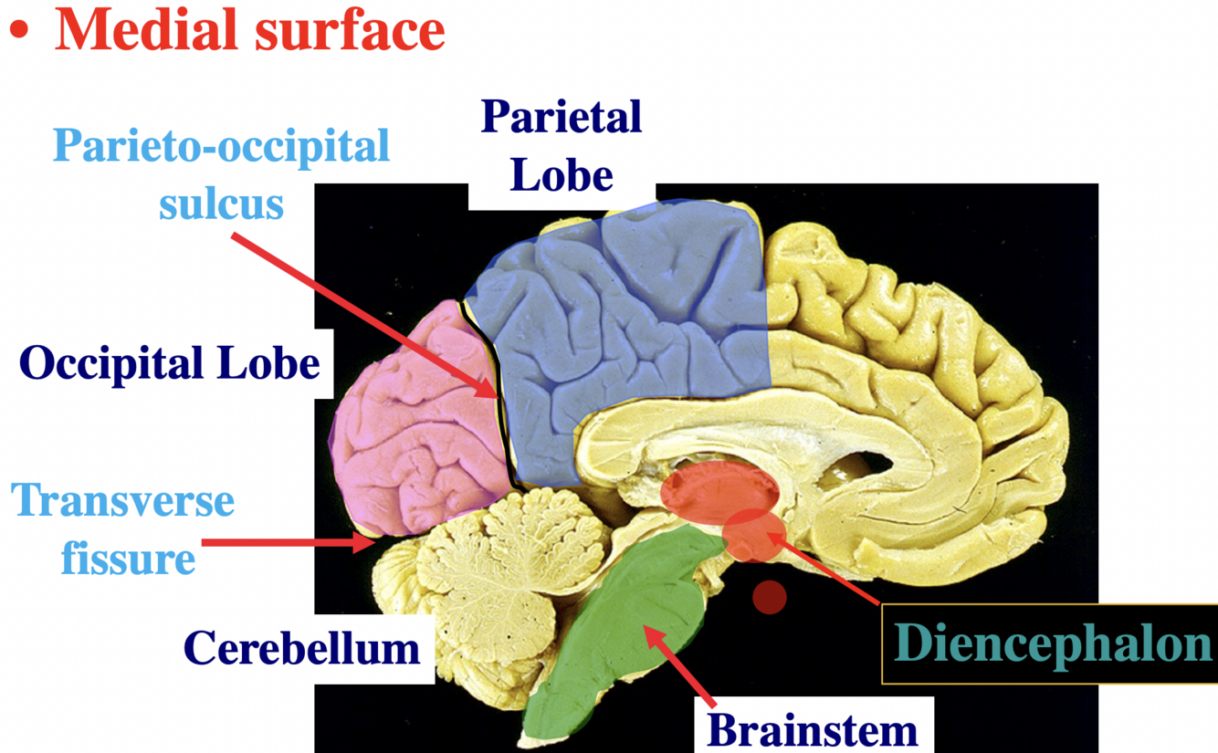 What separates the occipital and parietal lobe, the cerebrum from cerebellum and parietal lobe and frontal lobe?