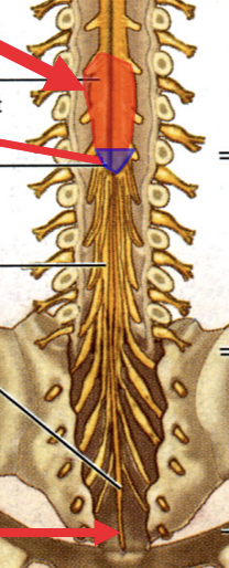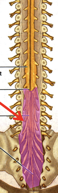 Grows due to disproportionate growth of spinal cord vs vertberal column