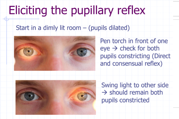 how do you illicit the pupillary reflex?