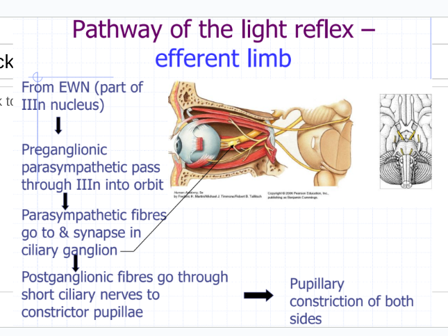 what is the pathway of light reflex in the efferent limb?