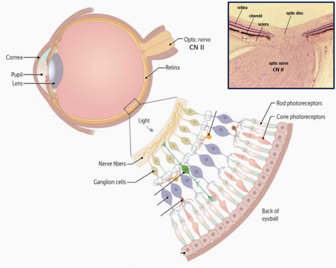 The optic nerve (CN II) is formed by axons of retinal ganglion cells