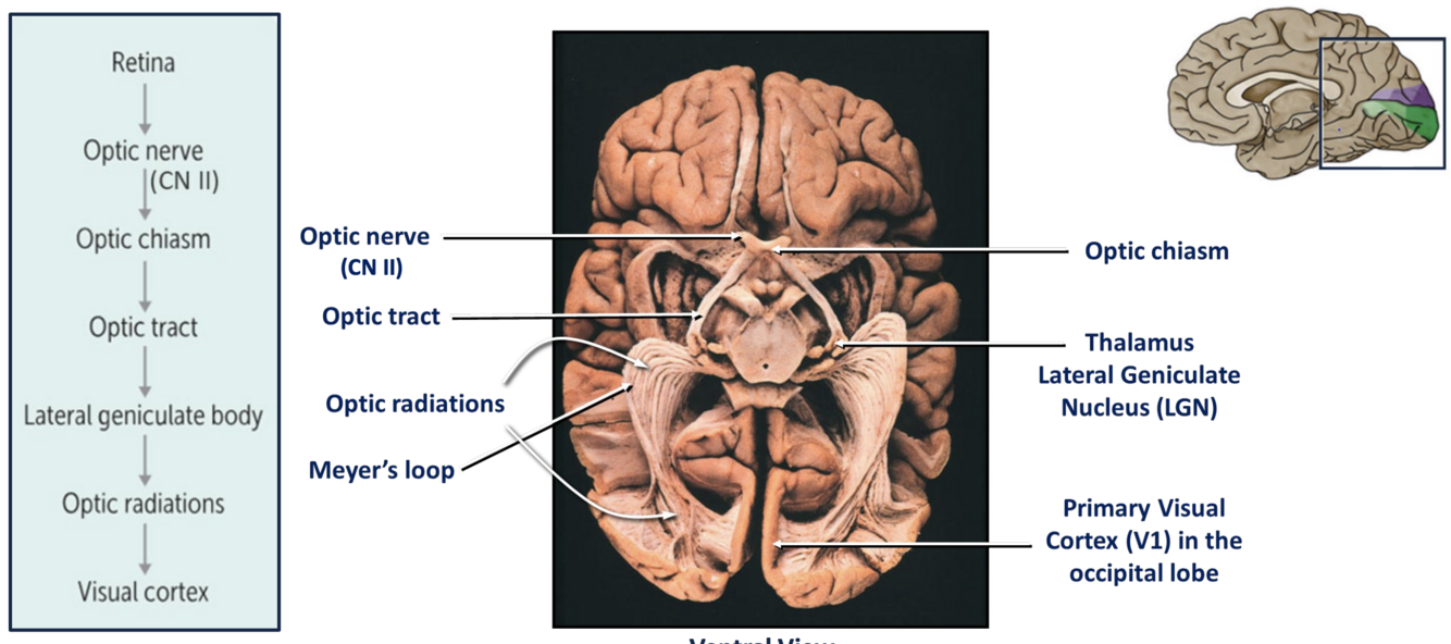 Visual perception pathways take information from the retina to the cortex