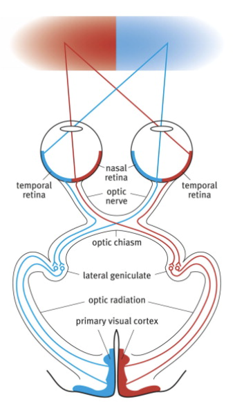 Information from nasal retinas crosses over contralaterally