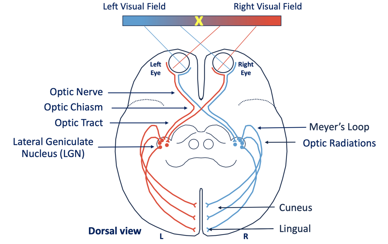 The right visual field maps to the left hemisphere