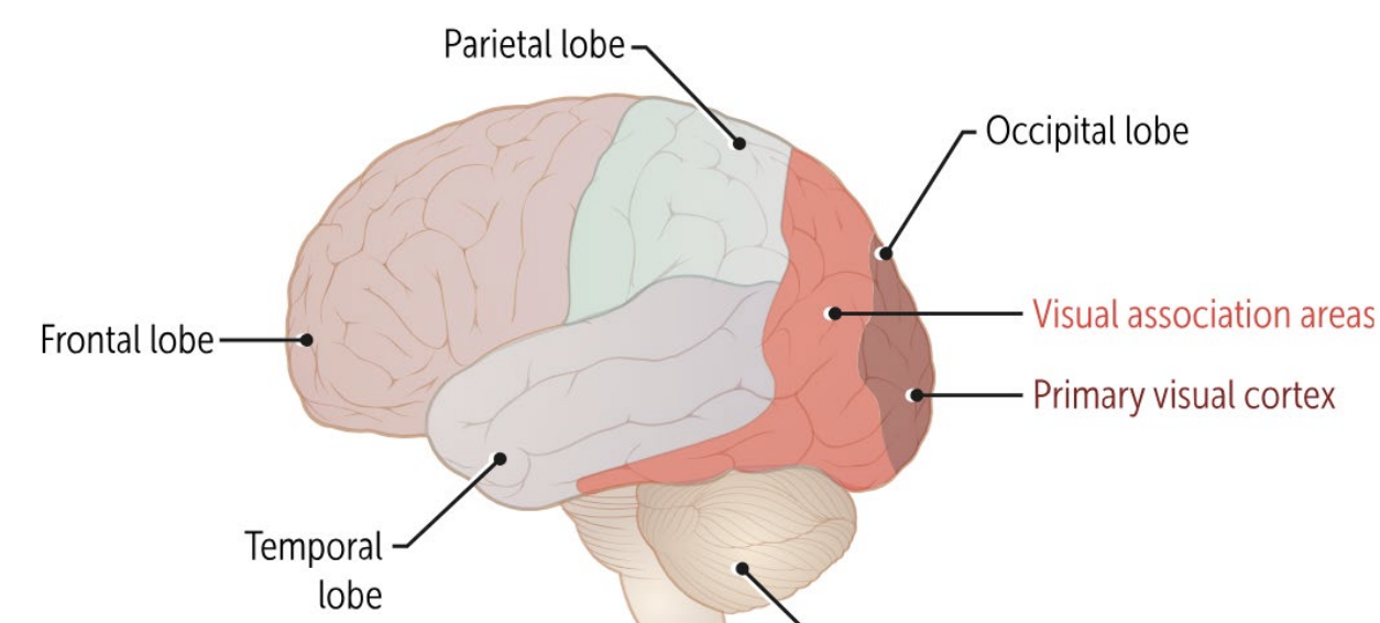 Damage to visual association areas can cause visual agnosia; inability to recognize and name objects despite normal vision