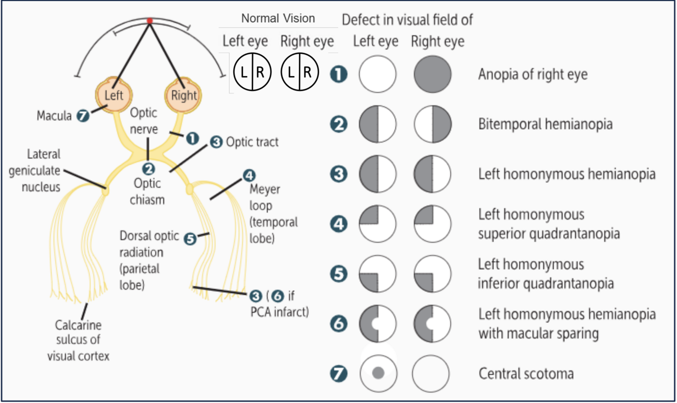 Damage to the optic nerve before the optic chaism will cause ipsilateral eye deficit