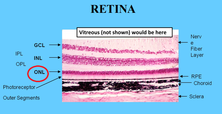 What cell type does the outer nuclear layer of the retina contain?