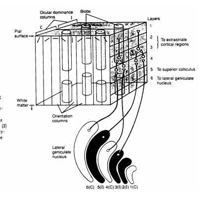 Cortical Organization: Cortical Columns: variations on a common theme used to represent different features (attributes) of a stimulus