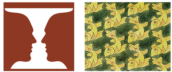 Figure-ground dichotomy defines our ability to visually separate elements based on contrasts such as light an dark, black and white.