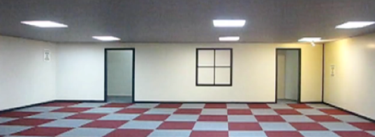 That the perceived size of an object depends on other subjects in the visual field. In the picture is an illusion where the doors look equal to size, but in fact this isn’t the case.