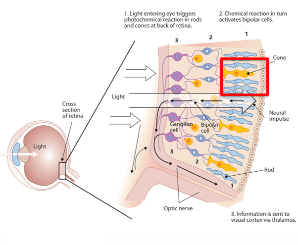 What’s the difference between rods and cones in regard to light sensitivity?