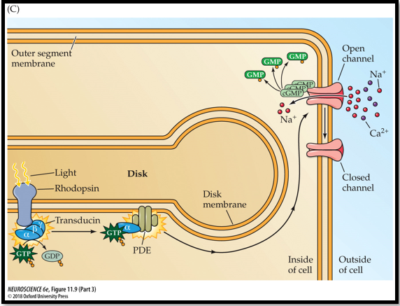 While the process of phototransduction seems complicated (and is complicated), it is a process that ensures no delay by causing an intracellular cascade that leads to the amplification of the signal. With this, phototransduction leads to the closing of hundreds to thousands of channels.
