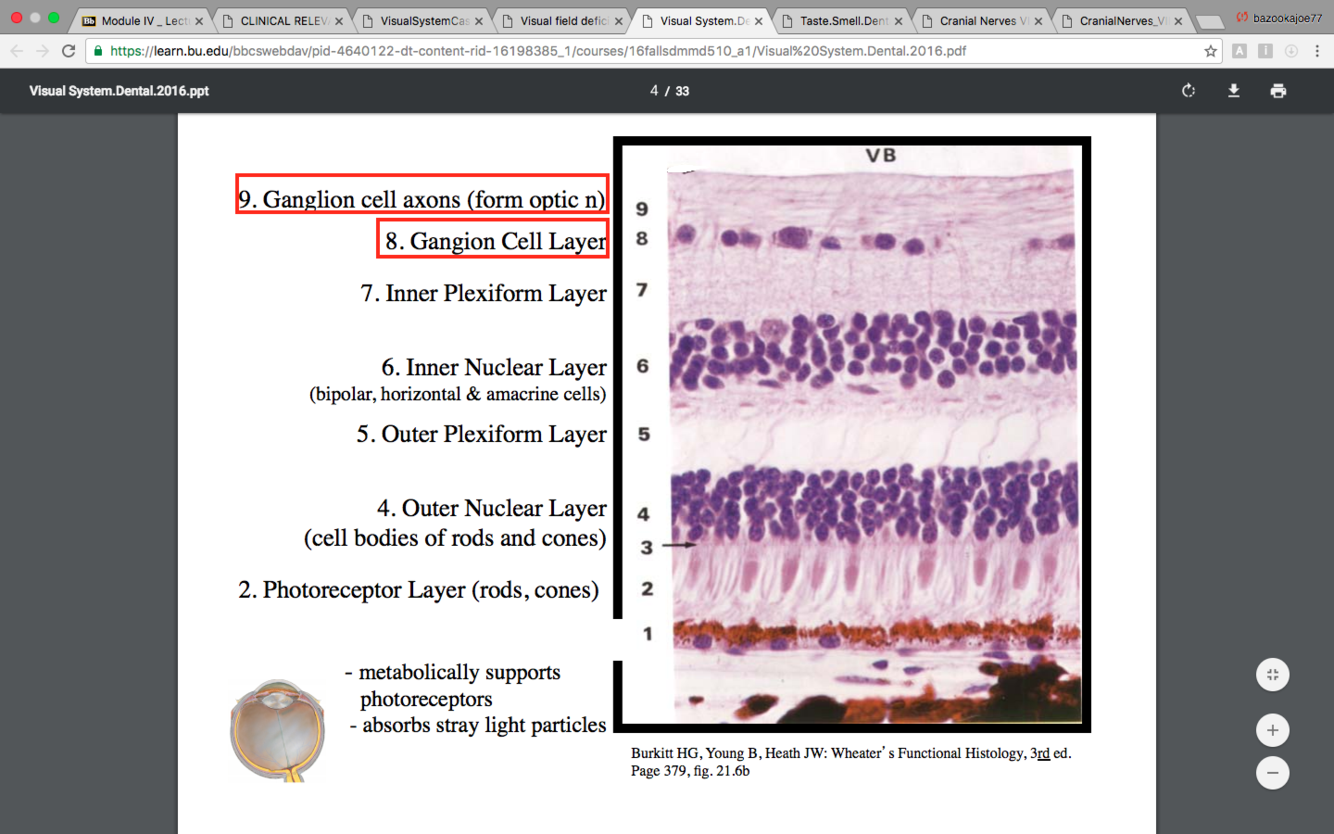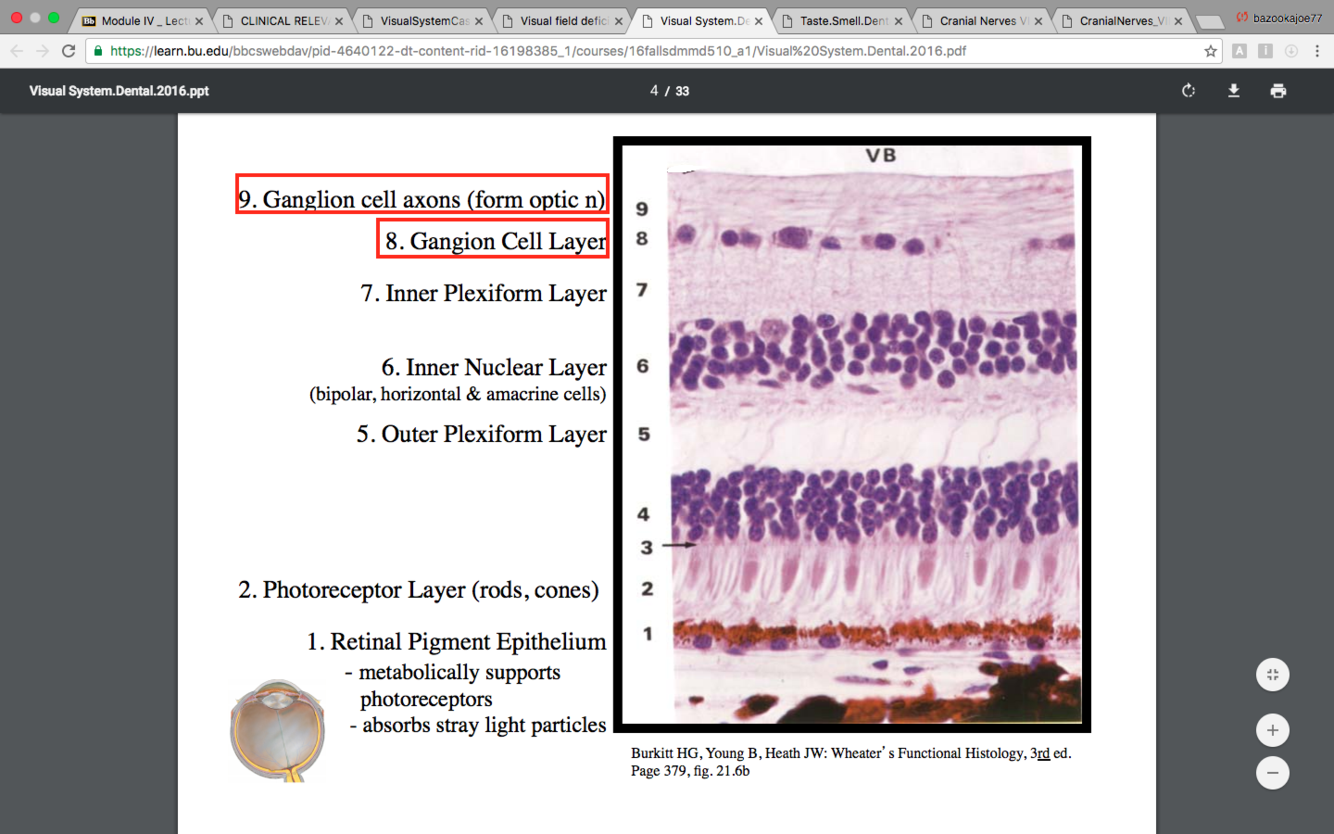 (axons of retinal ganglion cells)