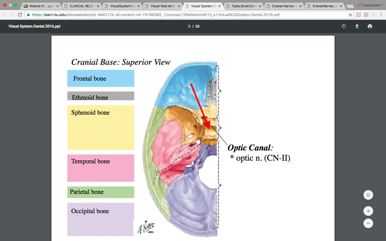The optic nerve exits the orbit, traverses the optic canal and emerges into the middle cranial fossa