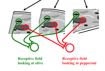 Each __________ is looking at a slightly different but overlapping region of visual space.