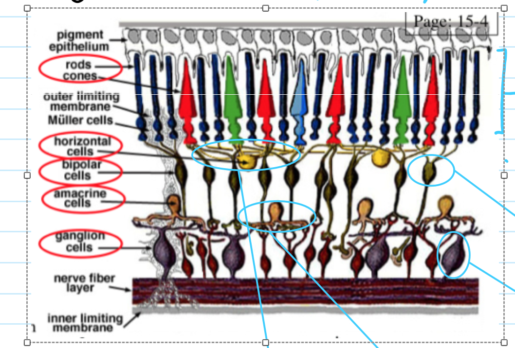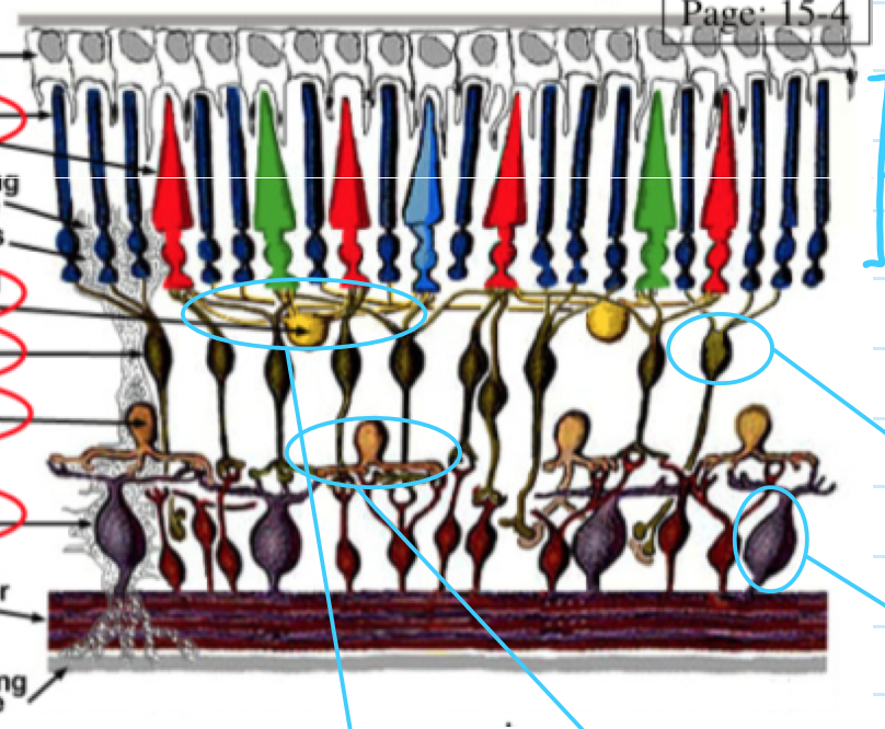 Label the blue circles in the retinal circuitry