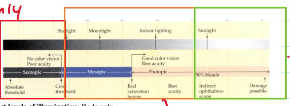 The orange box on the regular levels of luminance, both rods and cones are activated.