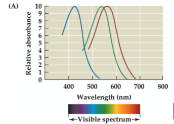 (1/2/3) types of cones with different wavelengths preferences
