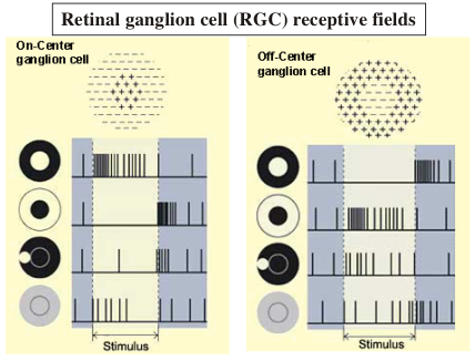 Answer these fellow examples of broad-band center-surround cells’ receptive fields. Here let’s focus on the on-center field.