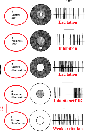 Answer these fellow examples of broad-band center-surround cells’ receptive fields. Here let’s focus on the off-center field.