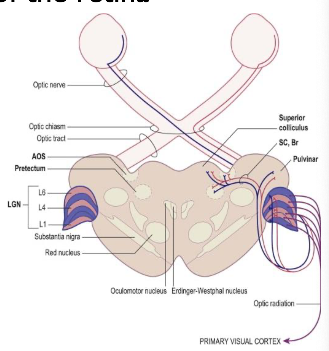 - receptive field properties: more complex than photoreceptors, the center of receptive field responds differently than the surrounding