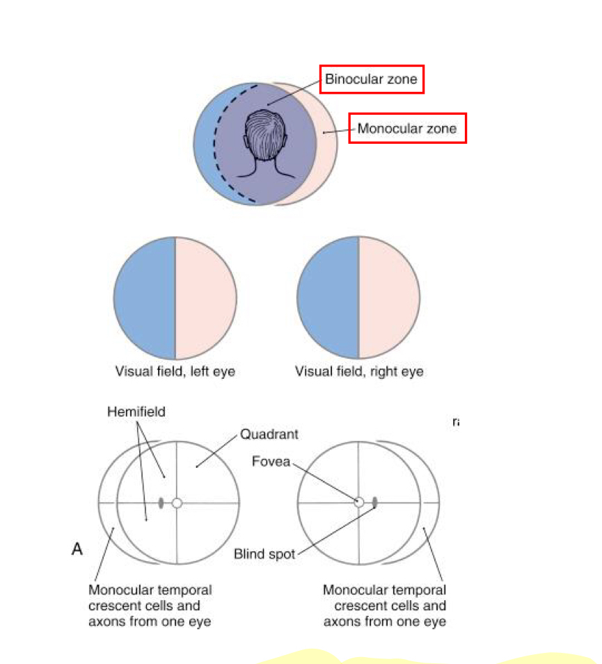 -Left nasal fibers-layers 1, 4 and 6 of LGN